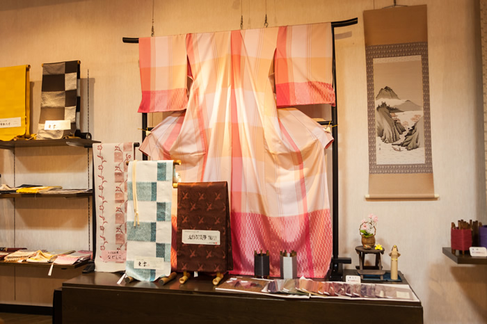 | 特徴 | ・豪雪地域のため、冬は家の中で糸を紡ぎ織物を織っていた ・1つの着物は一人の職人が一貫して作成を行っている ・作り手は若手の職人が多く、比較的華やかな作品が多い |