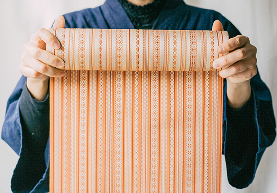 | 特徴 | ・奈良時代から続く高級織物。細かい縞、絣が特徴。 ・1956年に重要無形文化財に指定。2010年にユネスコ無形文化遺産リストに登録された ・15項目の規定を満たしたものだけが証紙を貼り付けされる |