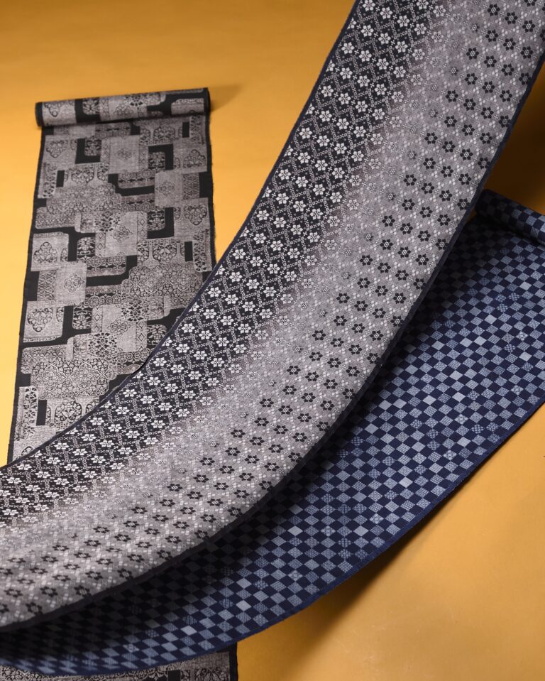 | 特徴 | ・2種類の糸を用いて柄を織り出すのが特徴。締め心地が良い ・現在はほとんどの製品が機械織に変わっている ・日本三大織物の一つ。江戸時代徳川将軍家に献上された |