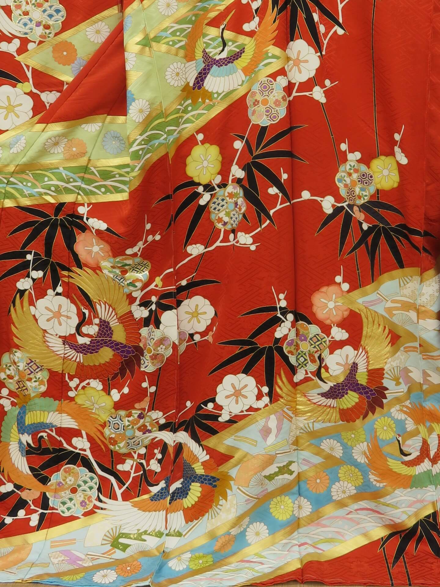 | 特徴 | ・模様の輪郭が混ざらないよう、のり(糸目糊)を引くのが特徴。色彩と表現が豊か ・江戸幕府の禁止令によって豪華な着物が禁止された代わりに、禁止されていない技法で作られた華やかな京友禅が広く知られるようになった ・過去は鴨川で布を晒していたが、最近は郊外へ移転している |