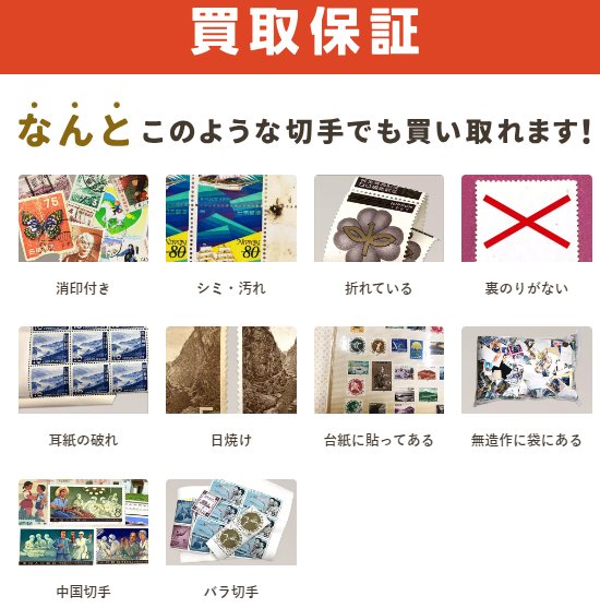 汚れ、日焼けなどダメージがある切手でも種類によっては高価買取になる可能性もございます。